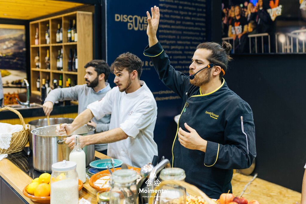 Dois momentos de charme e promoção. O primeiro, no espaço institucional do Turismo Porto e Norte de Portugal, com a apresentação oficial de quatro eventos âncora de 2024: Expodemo; Week Demo Sport; Festival de Arroz Doce no Cesto e a Romaria de S. Torcato. O segundo, no stand da CIMDOURO, de genuína promoção do território através de provas de espumante “Terras do Demo”, degustação de produtos locais e um showcooking de arroz doce no cesto liderado pelo Chef Fábio Bernardino, em que o Tópê participou também.