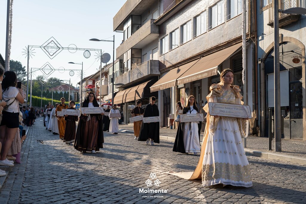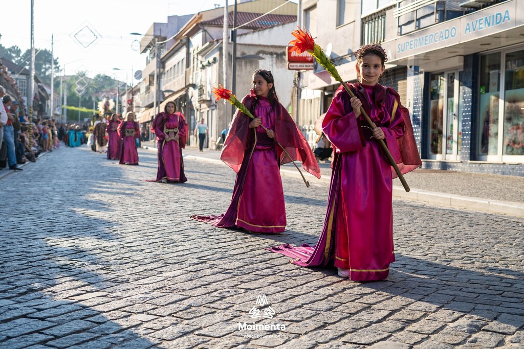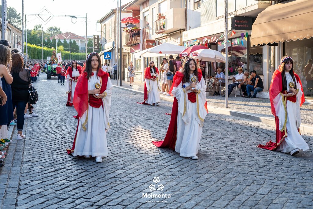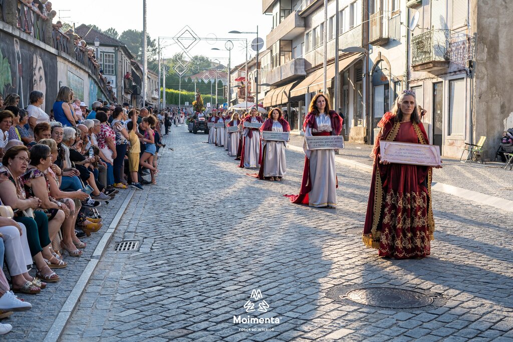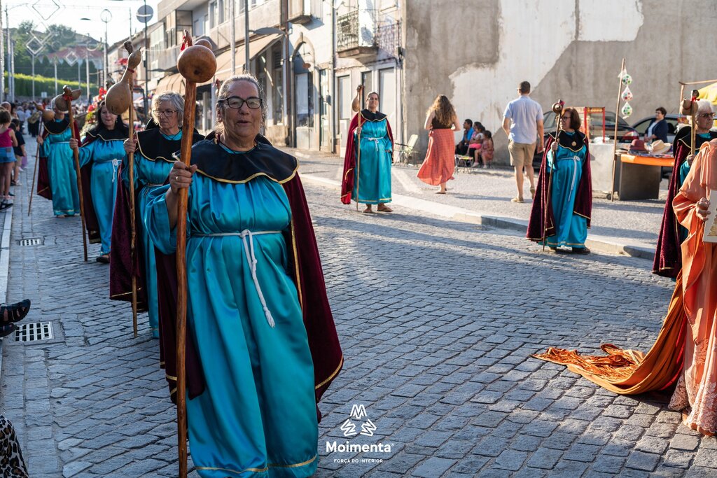 Milhares de pessoas encheram as ruas, ruelas e passeios da vila de Moimenta da Beira para assistir à majestosa Procissão em honra de S. João Batista, este sábado, dia 24 de junho. O cortejo, que se prolongou por mais de duas horas sob imenso calor, voltou a encantar pela beleza, pela cor, pelo simbolismo, pela tradição que mostra a devoção dos moimentenses ao seu padroeiro.