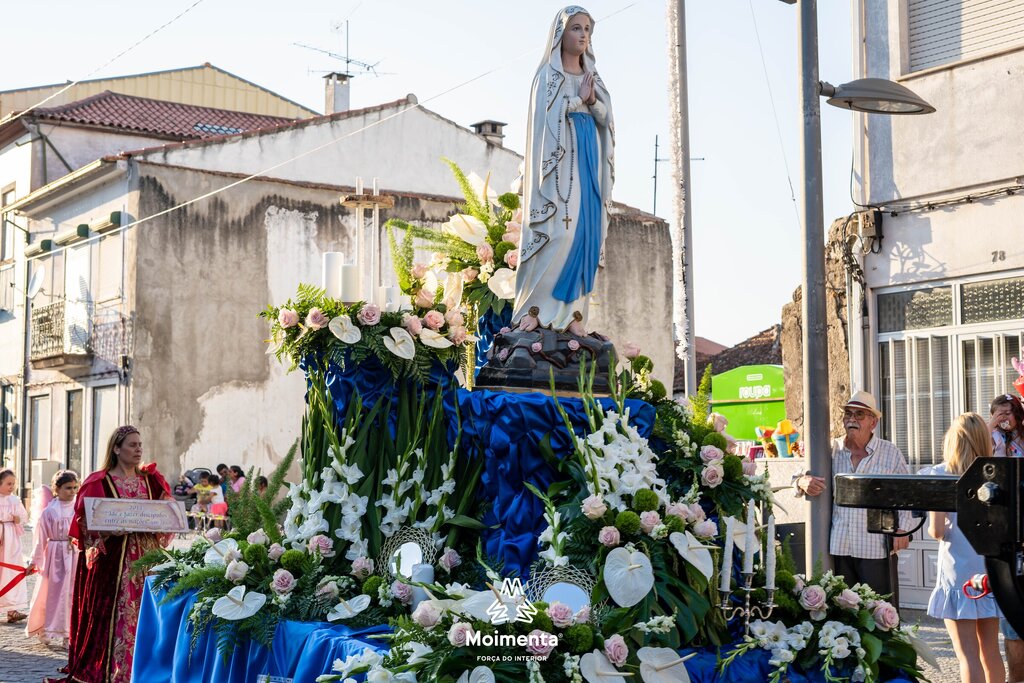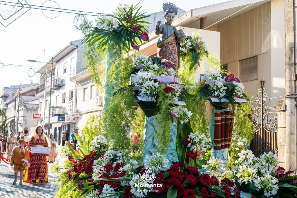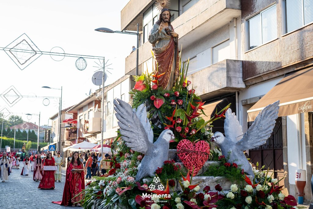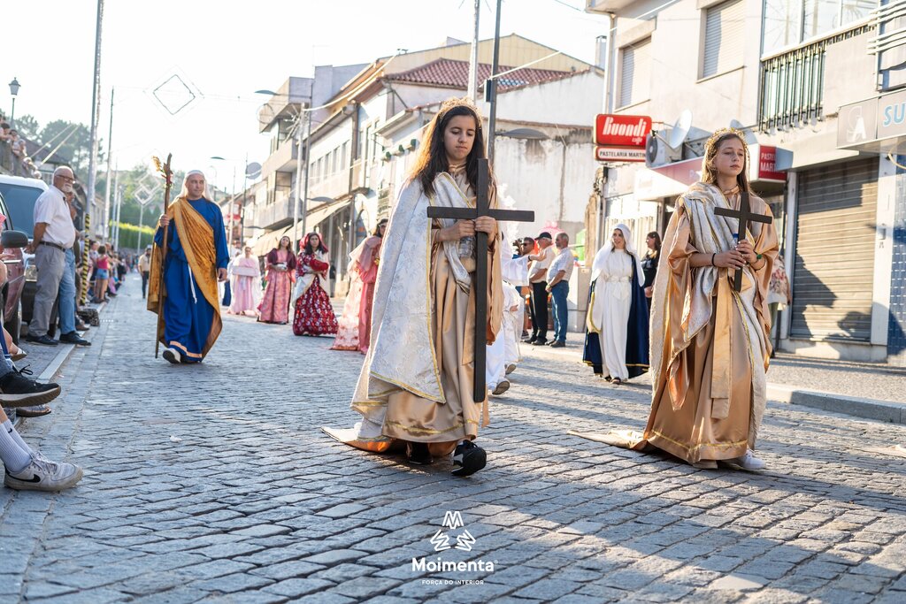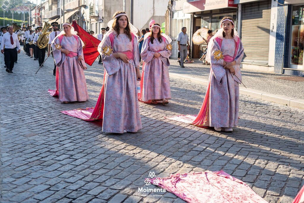 Milhares de pessoas encheram as ruas, ruelas e passeios da vila de Moimenta da Beira para assistir à majestosa Procissão em honra de S. João Batista, este sábado, dia 24 de junho. O cortejo, que se prolongou por mais de duas horas sob imenso calor, voltou a encantar pela beleza, pela cor, pelo simbolismo, pela tradição que mostra a devoção dos moimentenses ao seu padroeiro.