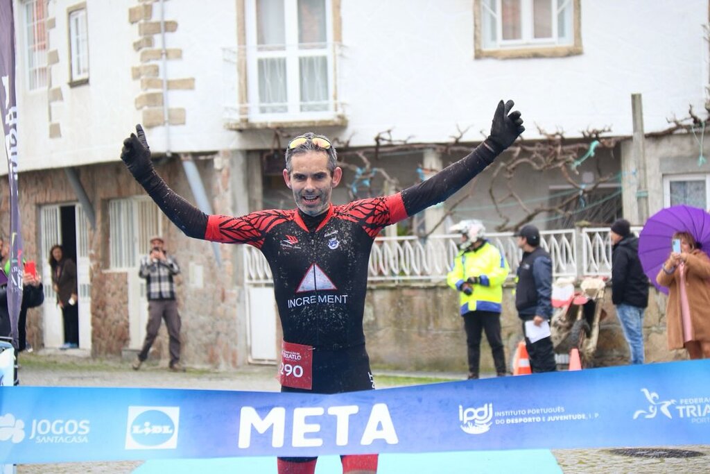 O atleta, que reside em Moimenta da Beira, foi o primeiro a cortar a meta depois de ter percorrido as três distâncias (5,5 km de corrida, 21,9 km de ciclismo e 3,150 Km novamente de corrida) em 1 hora 25 minutos e 36 segundos.