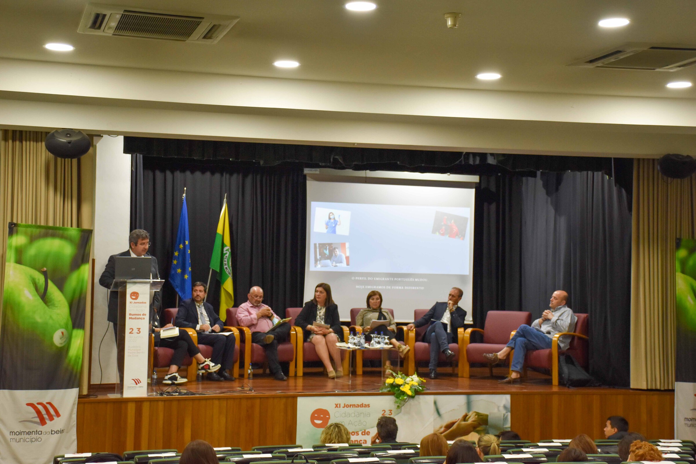 Uma mesa de debate com sete elementos e um moderador refletiu sobre um tema atual: “O contributo dos migrantes a nível económico, social e demográfico”. Foi o segundo e último dia das XI Jornadas de Cidadania, que decorreram em Moimenta da Beira num auditório quase repleto!