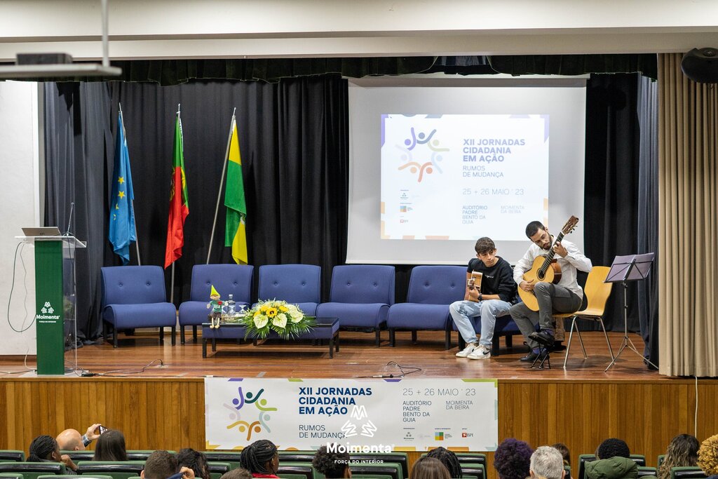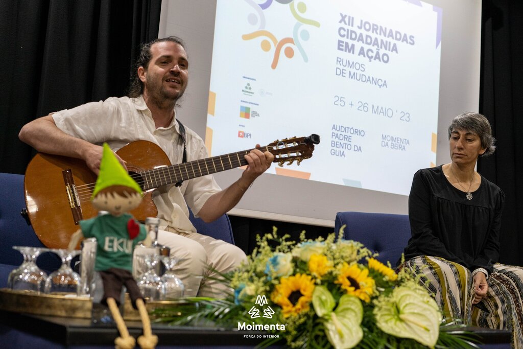Antes do arranque da programação, atuou a Academia de Música Quinta do Ribeiro. O som, que ecoado deixou sonâncias e consonâncias no ar, haveria de renascer depois, quando cantaram (e tocaram) Raquel Gomes e David Ramy, da Sociedade Artística Musical dos Pousos, uma instituição cultural da região de Leiria, de mais de século e meia de vida, que desenvolve em parceria com diversas instituições e órgãos do Estado um vasto leque de programas nos âmbitos da Formação, Musicoterapia e Terapias Expressivas, mas que para estas Jornadas de Cidadania, além da ária, Raquel e David levaram para à mesa, para reflexão e debate, o tema da ‘Capacitação em Rede / do Nascer ao Morrer’, o segundo do Painel 3 ‘Portugal Inovação Social / Capacitação para o Investimento Social’. O primeiro tema, ‘EKUI – A revolucionar a forma como as crianças aprendem e se relacionam através da empatia e inclusão’, foi levado por Liliana Félix. A EKUI é uma metodologia multissensorial e inclusiva para aprender a falar, a ler e a escrever. O terceiro tema ‘A inovação social presente nos Prémios BPI Fundação “la Caixa”’, alguns já conquistados merecidamente por instituições do concelho, foi animado por Ana Feijó, diretora territorial da Fundação “la Caixa”; e o quarto e último tema ‘Inovação Social presente e futuro: Tipologias de financiamento’, por Alexandra Neves, da Portugal Inovação Social. A moderação, essa esteve a cargo de Amadeu Araújo, do semanário Expresso, moderação feita com mestria, profissionalismo e competência, atributos merecedores de aplausos.