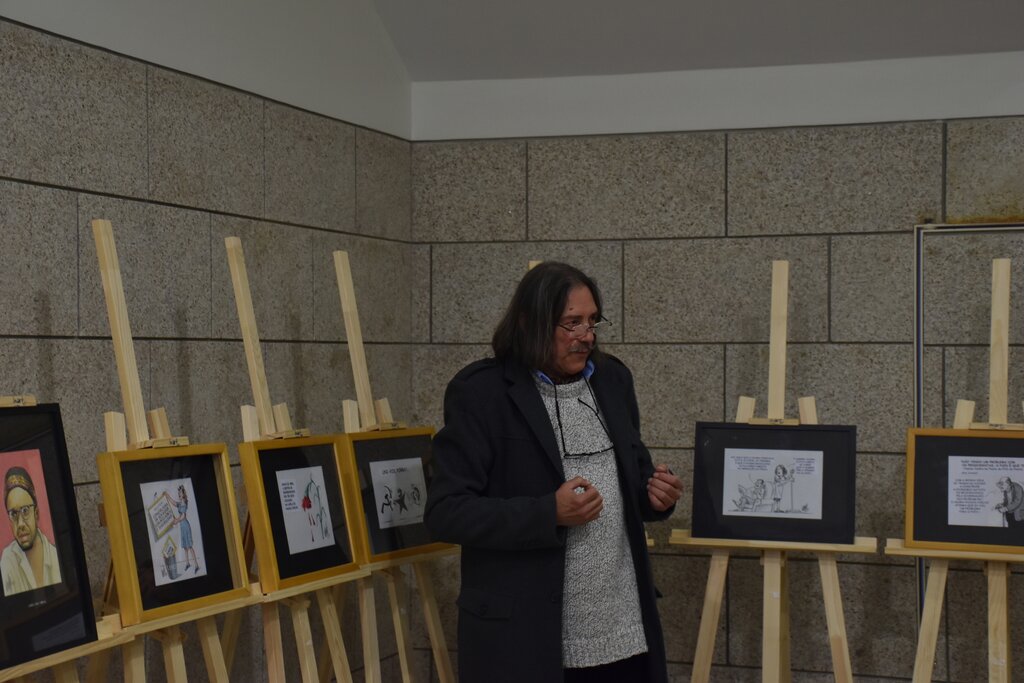 “Rostos & Riso” é o nome da exposição que pode (e deve) ser visitada pelo público em geral. “Rostos, porque tem retratos que fiz para ilustrar a História de Portugal de José Hermano Saraiva; e Riso, porque tem desenhos de humor, sátira e caricatura”, explica o autor.
