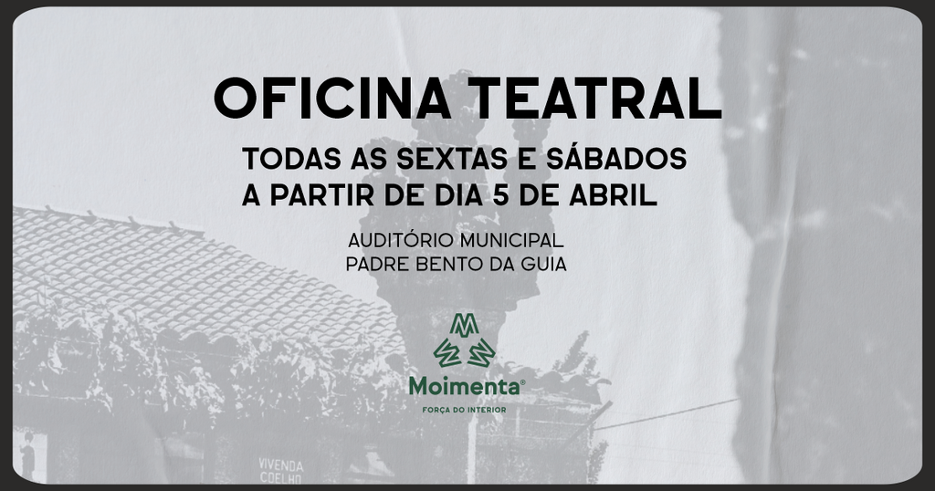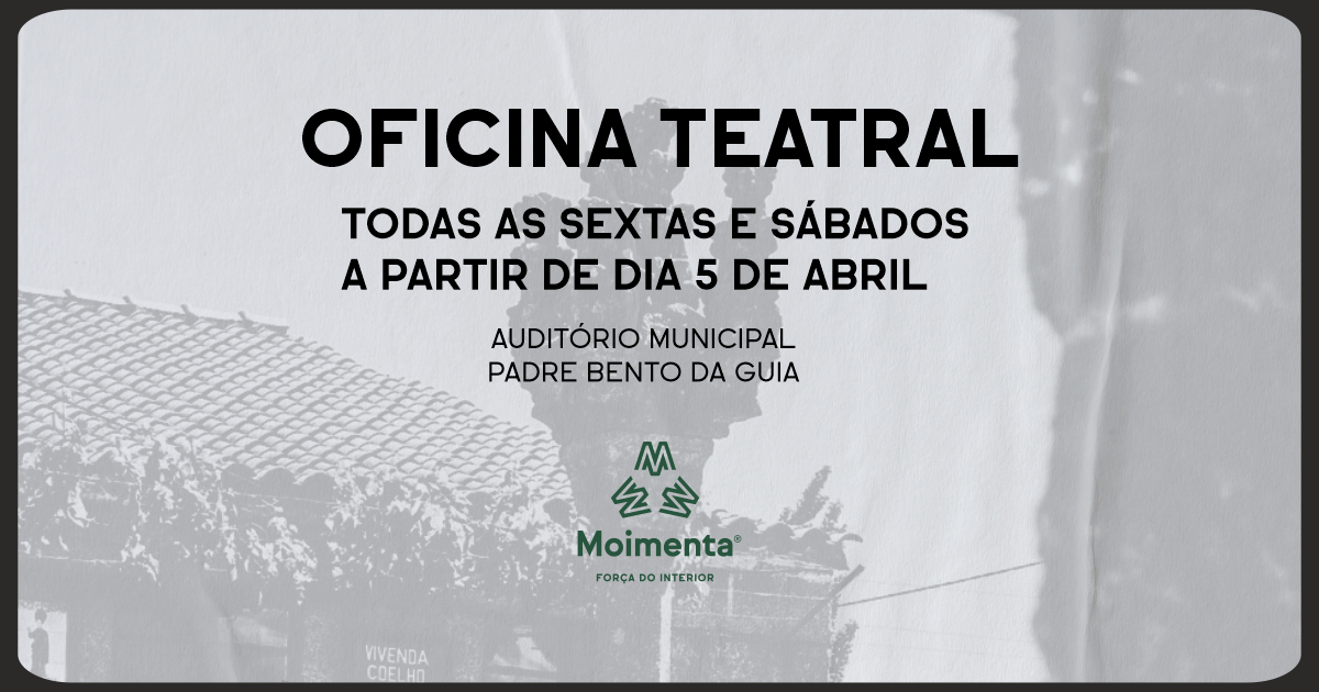 Entre 5 de abril a 8 de junho, o Auditório Municipal Padre Bento da Guia vai abrir portas para acolher, duas vezes por semana, as Oficinas Teatrais. Os encontros, dinamizados pela estudante do ensino superior Inês Pereira (de Passô), são abertos a toda a comunidade (a partir dos 15 anos) e vão decorrer sempre às sextas, às 18h30, e aos sábados, às 15 horas. Os interessados deverão efetuar uma inscrição prévia.
