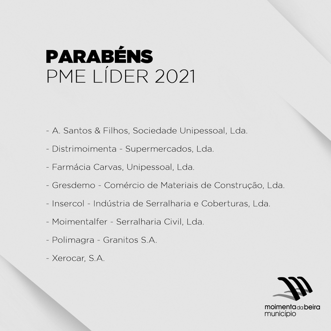 A lista recentemente atualizada pela entidade revelou que as empresas A. Santos & Filhos, Sociedade Unipessoal, Lda, Distrimoimenta - Supermercados, Lda, Farmácia Carvas, Unipessoal, Lda, Gresdemo - Comércio de Materiais de Construção, Lda, Insercol - Indústria de Serralharia e Coberturas, Lda, Moimentalfer - Serralharia Civil, Lda, Polimagra – Granitos S.A e Xerocar, S.A conquistaram o carimbo PME Líder 2021 com base nos níveis de solidez e de desempenho económico-financeiro.