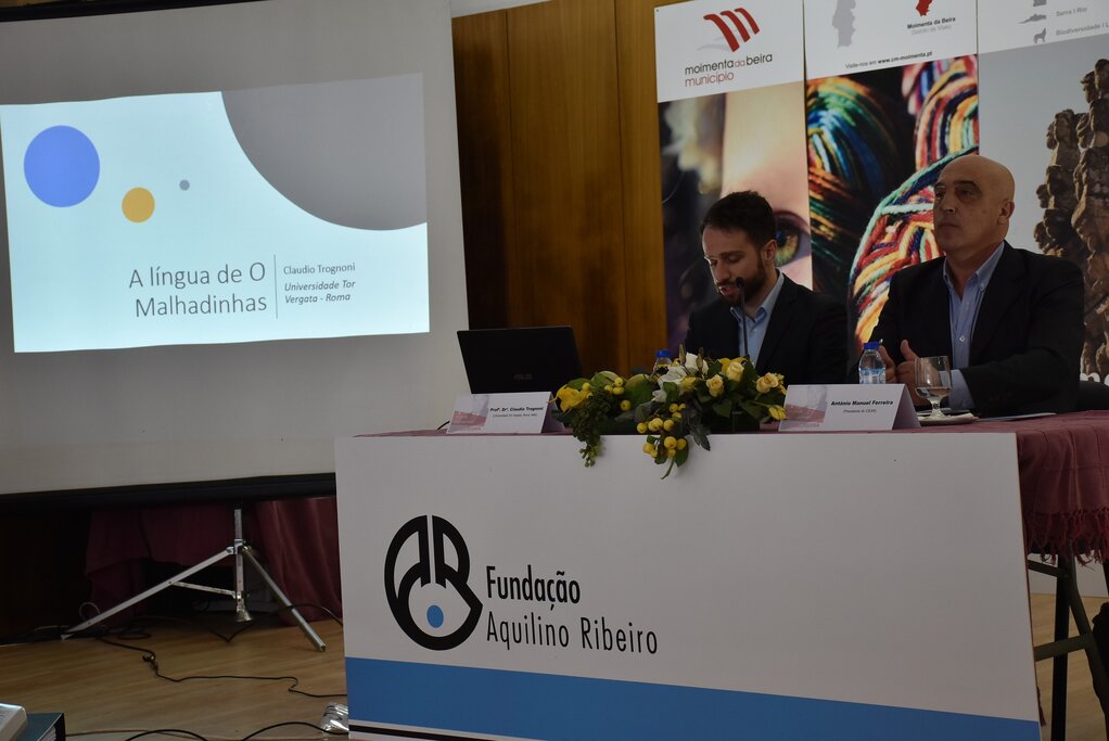 Claudio Trognoni abordou “A língua de O Malhadinhas: termos regionais, especialísticos e formas da coloquialidade”. Claudio Trognoni é docente de Língua Portuguesa da macroárea de Letras e Filosofia da Universidade Tor Vergata, Roma. Mestre em Língua Portuguesa, licenciado em Literatura Portuguesa com uma tese sobre a versão do Quixote de Aquilino Ribeiro, doutorou-se em 2017 com a dissertação “La narrativa breve di Aquilino Ribeiro: língua e idioletti in Jardim das Tormentas e O Malhadinhas”. É bolseiro Fernão Mendes Pinto, e colabora com a secção cultural da Embaixada de Portugal em Roma.