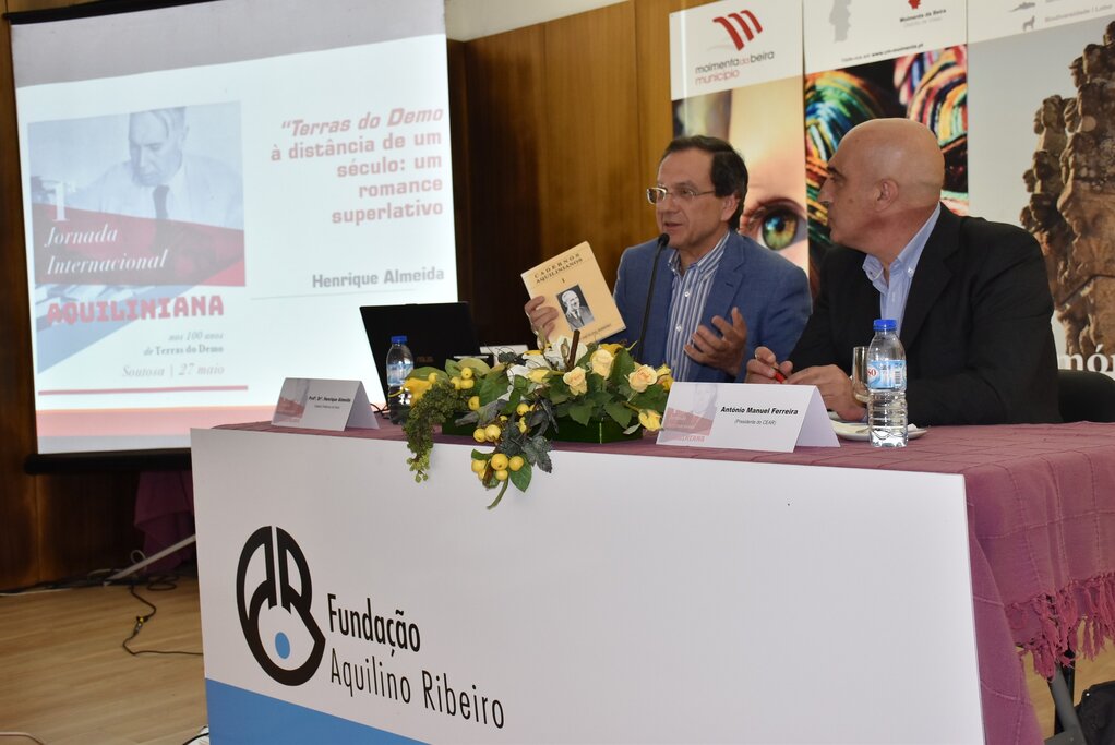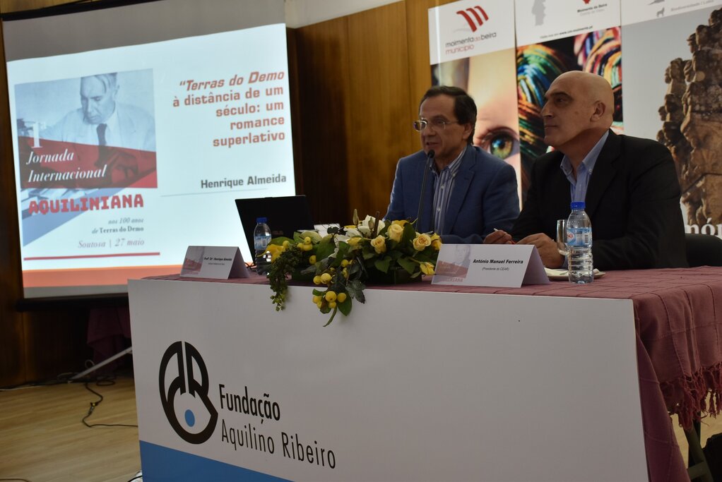 Henrique Almeida lembrou as “Terras do Demo à distância de um século: um romance superlativo“. Hentique Almeida é doutorado em Línguas e Literaturas Modernas pela Universidade Católica de Viseu. Ex-professor desta Universidade, exerce atualmente funções docentes no Instituto Politécnico de Viseu, como professor adjunto convidado. Obteve formação académica na Universidade Nova de Lisboa, na UBI e na Universidade de Coimbra. Integra, como investigador, o CLEPUL (Universidade de Lisboa). Fundador e ex-diretor do Centro de Estudos Aquilino Ribeiro (CEAR), dirigiu também a revista Cadernos Aquilinianos.É responsável pelo Departamento Cultural da Misericórdia de Viseu, tendo assumido as funções de Diretor do Museu desde 2012.