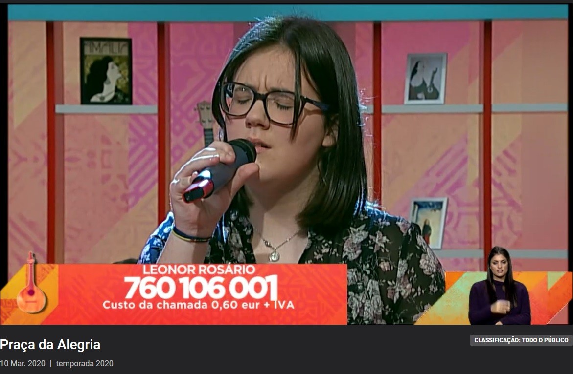 A votação está aberta até dia 16 de março e, se gostou da atuação da Leonor Rosário, ontem no “Fado na Praça”, da RTP1, vote nela, querendo e podendo. O número é 760 106 001. Custo da chamada 0,60 euros + IVA. A Leonor Rosário, de Leomil, Moimenta da Beira, é aluna de Canto e Violino da Orquestra CEMNOTAS.
