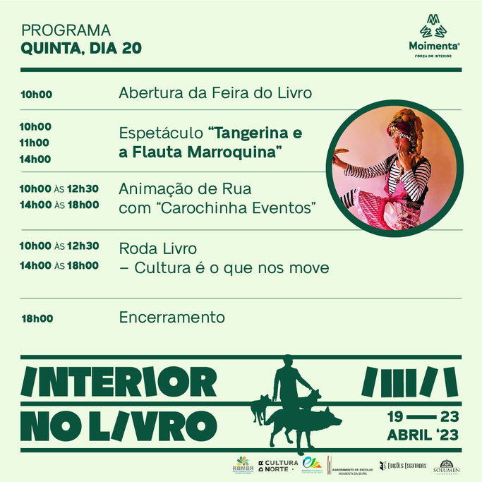 Mas o programa da Feira do Livro de Moimenta da Beira tem outros focos e apresenta-se diversificado, vasto e abrangente. Inclui momentos musicais, espetáculos infantis, recitais de poesia e até uma sessão de cinema educativo.