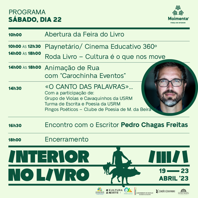 Pedro Chagas Freitas marca presença na tarde de sábado (16h30), 22 de abril, para um encontro com o público. E Raul Minh'alma vai estar no dia seguinte, domingo, 23 de abril, também a partir das 16h30, para apresentar ‘Como se fosse a primeira vez’, livro que publicou há poucos meses.