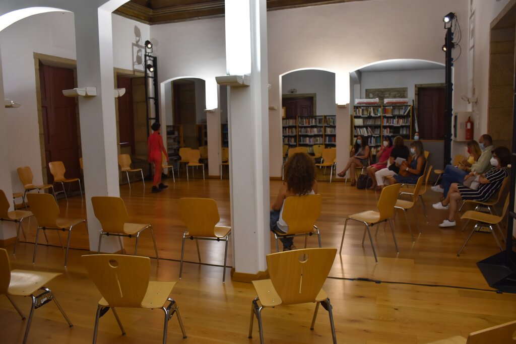 A personagem nua surpreende. Milimetricamente, tem a parte da frente da cor da pele e a parte de trás cor de rosa choque. Ou será ao contrário. Habituamo-nos que o rosto é a parte da frente. Mas Josefa Pereira personifica um monstro. Hidebehind é o nome do espetáculo. Silencioso. Enigmático. Espetáculo que aconteceu no 1º dia do Planalto - Festival das Artes, na Biblioteca Municipal Aquilino Ribeiro, em Moimenta da Beira.