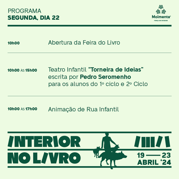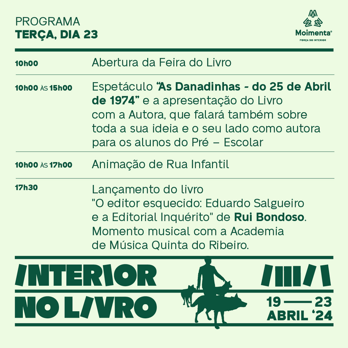 A Feira do Livro de Moimenta da Beira irá decorrer de 19 a 23 de abril no Largo do Tabulado, ficamos à sua espera.