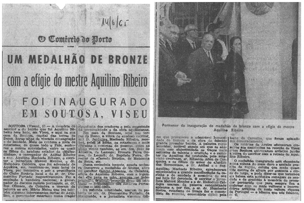 No dia 13 de junho de 1965, um domingo de Santo António, pouco mais de dois anos após a morte de Aquilino Ribeiro (27 maio 1963), os “Rotários Portugueses” prestaram homenagem ao mestre inaugurando na sua casa, em Soutosa, “capital das terras do Demo”, no concelho de Moimenta da Beira, um medalhão de bronze com a efígie de Aquilino Ribeiro, chumbado numa coluna “do mais duro e azulado granito da região”.