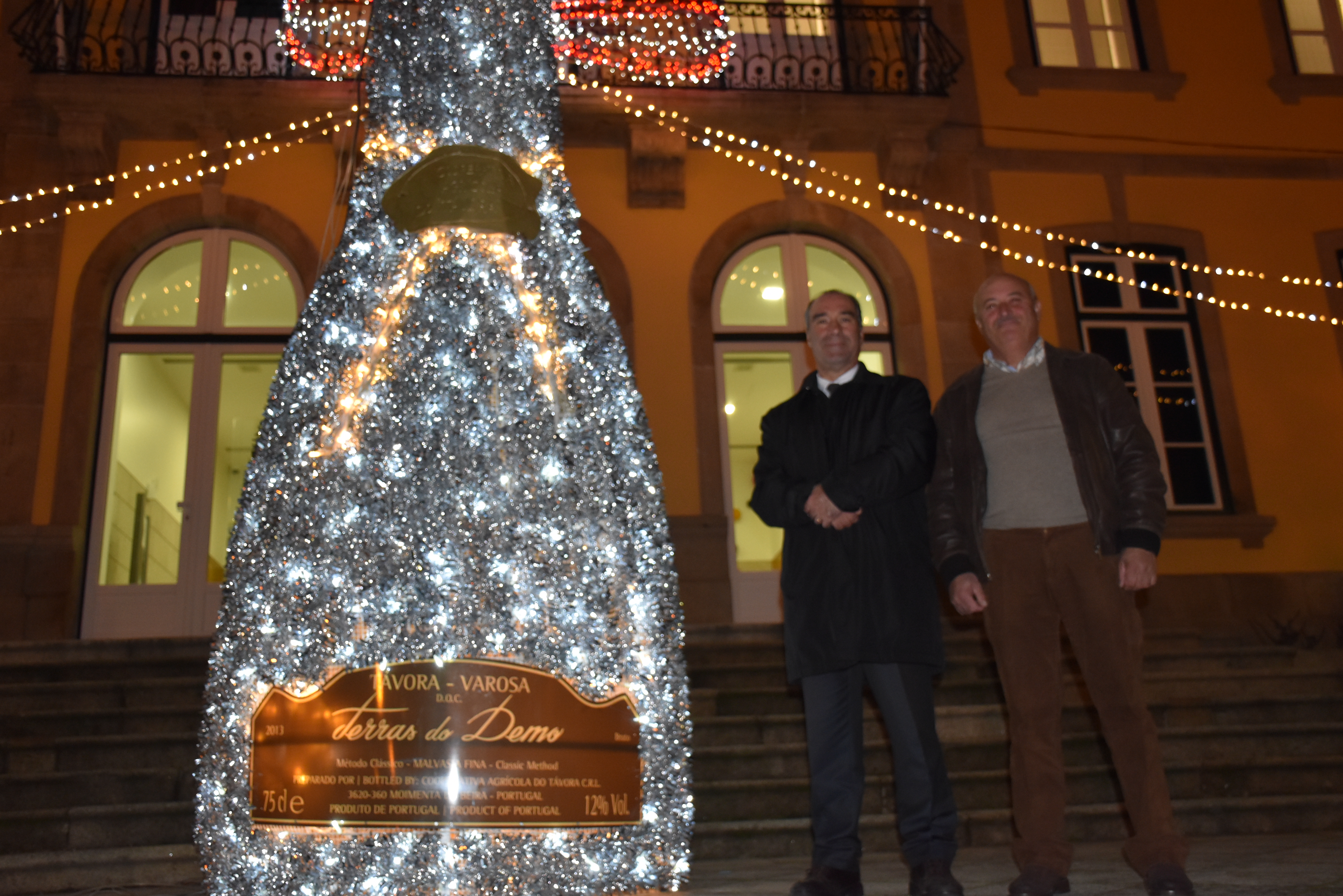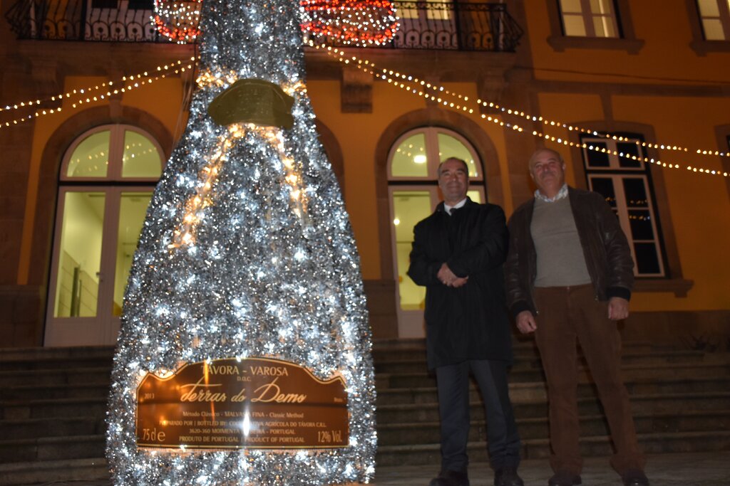 A representação gigante da garrafa desse néctar dos deuses foi inaugurada esta sexta-feira, 14 de Dezembro, em frente aos Paços do Concelho, pelo Presidente da Câmara Municipal, José Eduardo Ferreira, que se fez acompanhar por António Manuel Pinto, da direção da Cooperativa Agrícola do Távora, que produz o afamado e medalhado espumante.