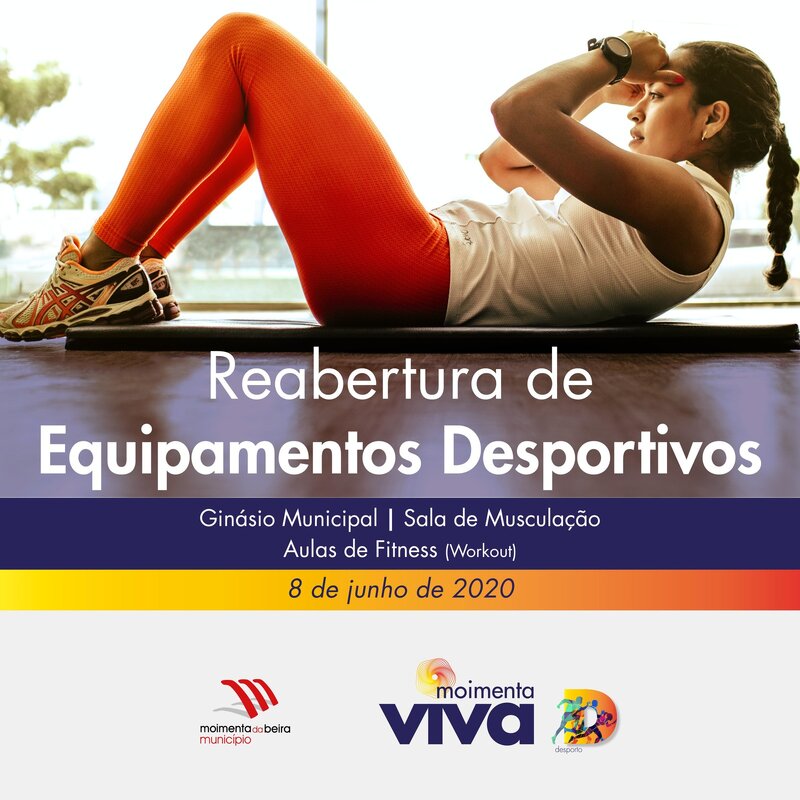 A partir da próxima segunda-feira, 8 de junho, por Despacho do Presidente da Câmara Municipal de Moimenta da Beira, José Eduardo Ferreira, reabre a sala de musculação do Ginásio do Pavilhão Gimnodesportivo Municipal, e reiniciam as aulas de fitness (workout), no Estádio Municipal.