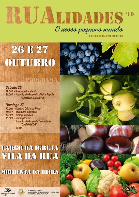 É na época de colheitas, fim da época da apanha da maçã e da uva, e no decurso da apanha da castanha, que a freguesia de Vila Rua, Moimenta da Beira, celebra em ambiente festivo o trabalho do campo, exaltando os produtos que a terra lhe dá todos os anos. Mas não só. Aproveita o certame, que se realizará já este fim-de-semana, sábado e domingo, 26 e 27 de outubro, para aclamar igualmente outros produtos manufaturados como os doces tradicionais, doces conventuais, a gastronomia, etc., produtos esses que vão estar expostos e à venda no Largo da Igreja de Vila da Rua.
