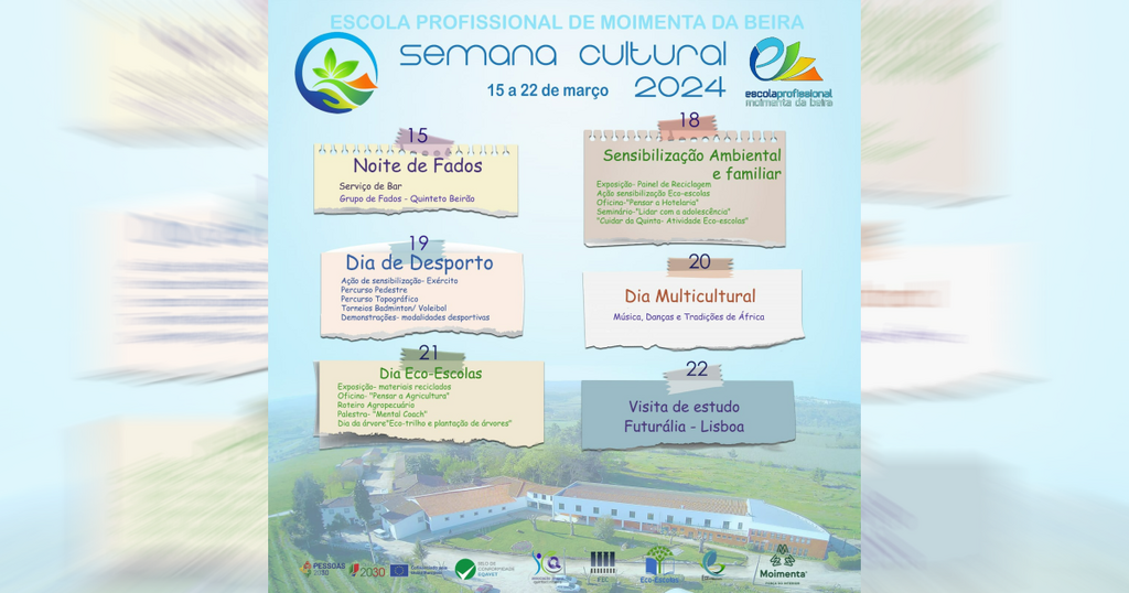 A Escola Profissional de Moimenta da Beira, sediada na Quinta do Ribeiro, na freguesia da Vila da Rua, vai promover mais uma Semana Cultural. O programa das atividades começa esta sexta-feira à noite, com a atuação do Grupo de Fados – Quinteto Beirão, e prolonga-se até 22 de março com um conjunto de atividades desportivas, de lazer, uma visita de estudo à Futurália, em Lisboa, oficinas, palestras, exposições, entre muitas outras.