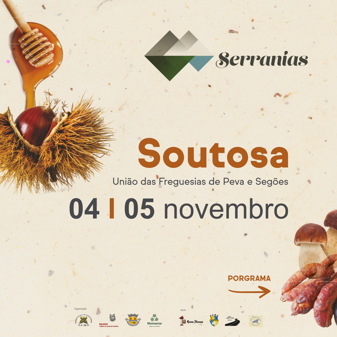É a primeira edição pós-pandemia. O “Serranias, Festival de Sabores e Tradições”, está de volta a Soutosa, terras de Aquilino Ribeiro, com um programa gastronómico sempre singular e um enérgico cartaz musical. É no primeiro fim de semana de novembro, dias 4 e 5.