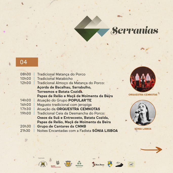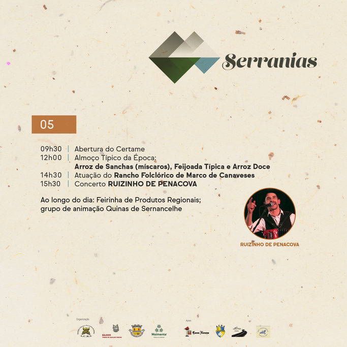 O “Serranias” é uma organização conjunta entre os “Baldios Terras de Aquilino Ribeiro”, União das Freguesias de Peva e Segões, Câmara Municipal de Moimenta da Beira, as associações de Soutosa, Peva, S. Martinho e Segões e a Casa Nossa.