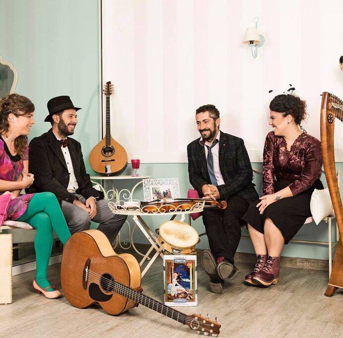 O quarteto galego dá pelo nome “Ghaveta” e nele se juntam a harpa (tocada por Beatriz Martínez), a voz, a percussão e o bouzouki, que é um instrumento de cordas da família do alaúde (por Marta Martínez), o violino (por Felipe Rodicio), a guitarra acústica e o bouzouki também (por Diego Langarika) para, no fim a conjugação ser íntima na procura da emoção, do ritmo, do baile e da ligação direta com o público que será também protagonista e participante da sua música. O som da banda mergulha num universo tímbrico cheio de sensações com um reportório de músicas de raiz tradicional misturado com outras composições próprias e arranjos ao estilo mais pessoal.