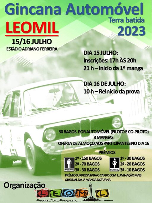 Por fim, novamente no Estádio Adriano Ferreira, uma Gincana Automóvel em terra batida, nos dias 15 e 16 de julho. Para participar na prova, as inscrições devem ser efetuadas no primeiro dia, das 17 às 20 horas.