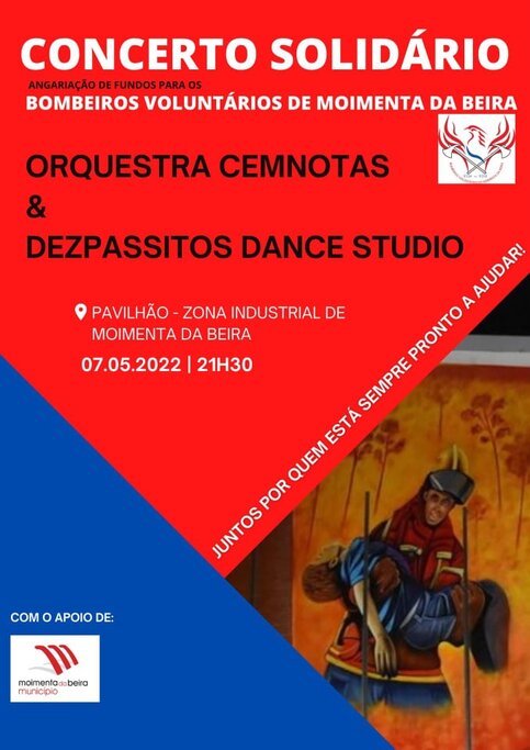 No próximo sábado, dia 7 de maio, os Bombeiros Voluntários de Moimenta da Beira organizam um ‘Concerto Solidário’ de angariação de fundos para esta instituição que está sempre pronta para ajudar quem precisa. Os Bombeiros têm também em curso uma outra campanha de angariação, mas de sócios.