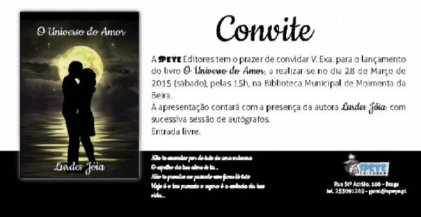 “O Universo do Amor” é o primeiro romance de Lurdes Jóia, nascida em Castelo, uma aldeia de Moimenta da Beira. O livro, com a chancela da “Speye Editores”, é lançado este sábado, 28 de março, às 15 horas, na Biblioteca Municipal Aquilino Ribeiro, em Moimenta da Beira. A entrada é livre.