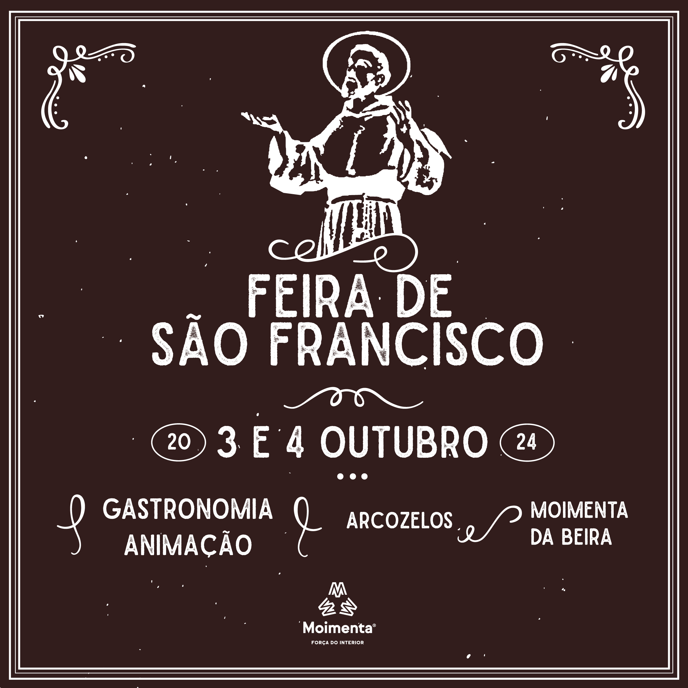 A Feira de São Francisco (santo protetor dos animais e padroeiro da ecologia) vai realizar-se nos dias 3 e 4 de outubro nas proximidades do cruzamento de S. Francisco, perto do Convento homónimo, na confluência das estradas nacionais 226 e 323, em terrenos da freguesia dos Arcozelos, em Moimenta da Beira.