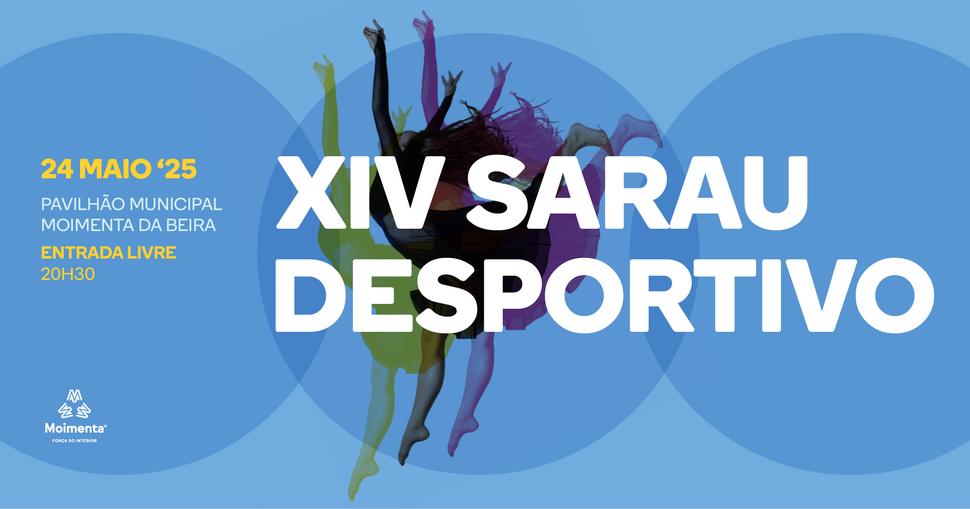 Aproxima-se mais uma edição do Sarau Desportivo que promete muitas surpresas, movimento e muita dança. Marque já na sua agenda, dia 24 de maio, às 20h30 horas, no Pavilhão Municipal de Moimenta da Beira.