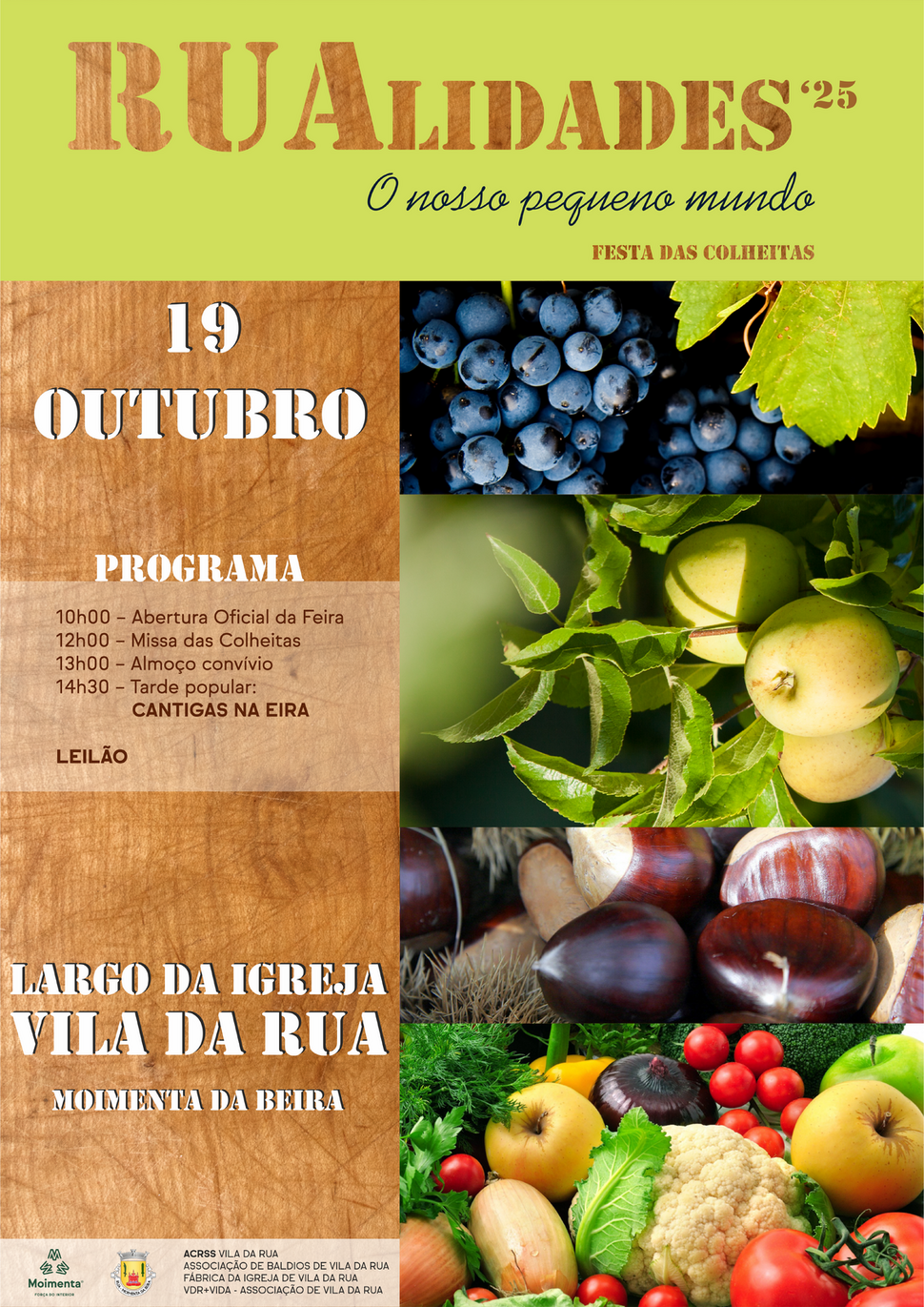 O certame terá lugar no Largo da Igreja de Vila da Rua e conta com a colaboração do Município de Moimenta da Beira da Junta de Freguesia de Vila da Rua e de várias associações locais, unidas para preservar e celebrar as tradições do outono.