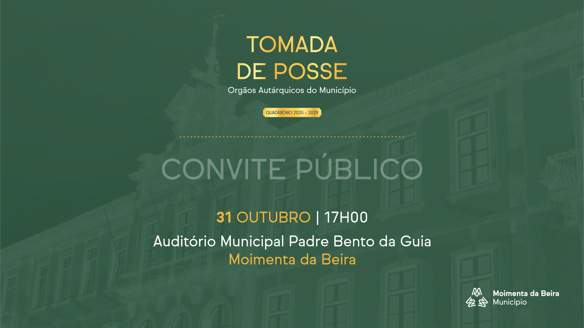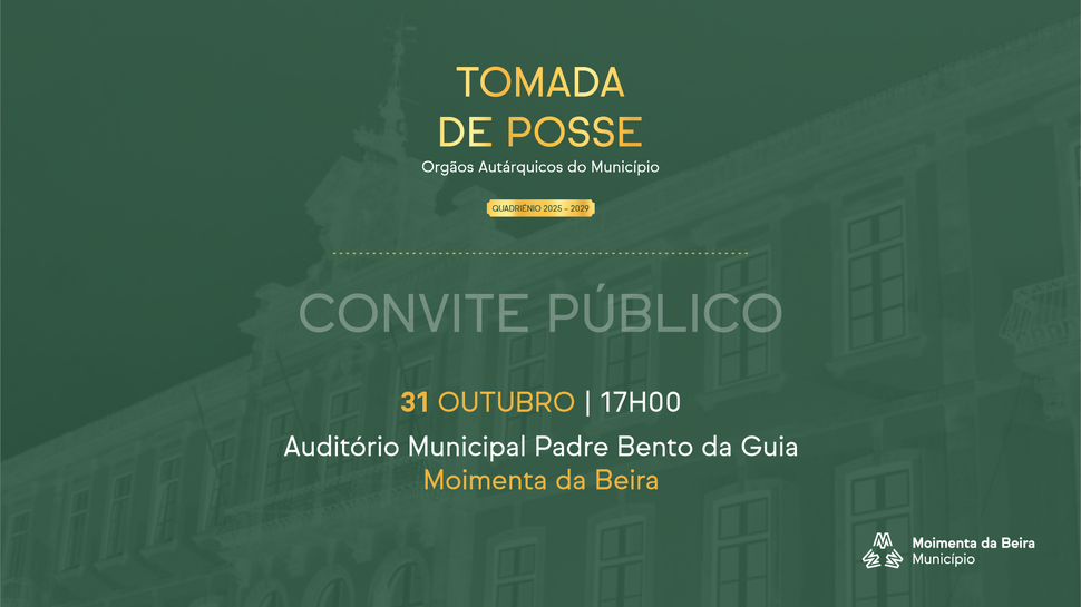 Decorrerá no próximo dia 31 de outubro, a partir das 17 horas, no Auditório Municipal Padre Bento da Guia, a cerimónia de tomada de posse dos órgãos autárquicos do Município.