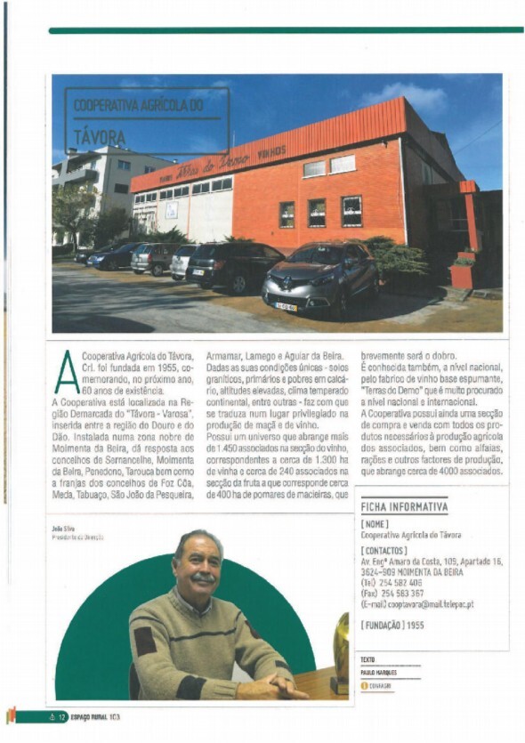 A “Espaço Rural”, revista bimestral da Confederação Nacional das Cooperativas Agrícolas de Portugal (CONFAGRI), entrevista na sua última edição (nº 103 – novembro/dezembro, 2014), duas destacadas figuras ligadas a Moimenta da Beira: João Silva, presidente da Cooperativa Agrícola do Távora, e Cartageno Ferreira, engenheiro e investigador agrícola.