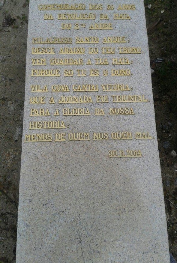 Quem se lembra na aldeia daqueles dias de rebelião, fala deles com orgulho. “Povo unido como o de Vila Cova não há”, recorda Maria do Céu, 85 anos, viúva de António Julião, autor dos 54 versos que relatam em rima toda a insurreição popular. “Os sinos tocaram a rebate quando o povo soube que a Junta andava lá na mata a cortar pinheiros. Juntamo-nos todos e fomos impedir que aquilo continuasse. A mata é nossa, é do nosso Santo André”, lembra Maria do Céu que entoa de cor algumas das rimas escritas pelo marido: “Vila Cova cantai vitória / que a jornada foi triunfal / para glória da nossa história / menos de quem nos quer mal”.