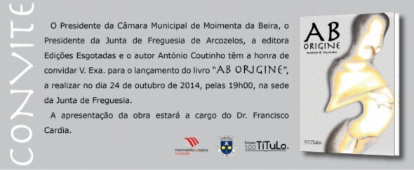 Um conjunto de 81 poemas e textos poéticos compõem “Ab Origine”, o terceiro livro que António B. Coutinho publica no espaço de quatro anos. Começou em 2011 com “52 Quase Poemas” e continuou em 2012 com “Montesias”. “Ab Origine” é lançado esta sexta-feira, 24 de outubro, às 19 horas, no salão maior do edifício-sede da Junta de Freguesia dos Arcozelos, Moimenta da Beira.