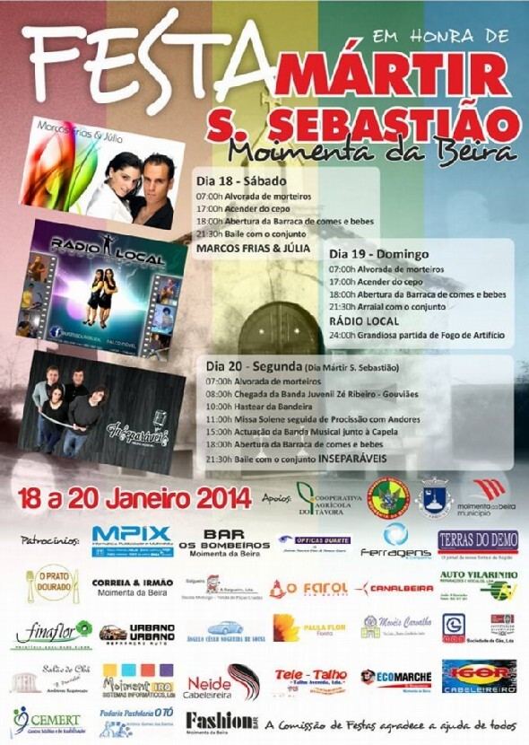 Três dias de festas em honra do mártir S. Sebastião, já este fim-de-semana, em Moimenta da Beira: sábado, domingo e segunda-feira, 18, 19 e 20 de janeiro, respectivamente. O programa promete.