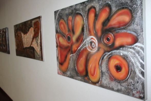 Ao todo são 24 telas de representações várias, desde flores a figuras humanas a outras mais abstractas, de um conceito ora mais visual ora mais material, onde o toque muitas vezes prevalece ao olhar, à observação visual, como no caso das montagens.
