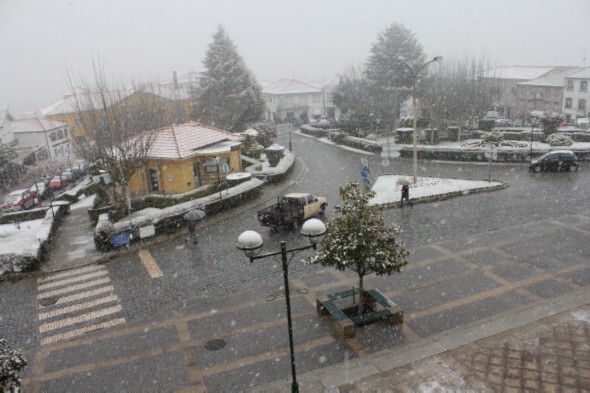 É o terceiro nevão em dois meses. A meio da manhã de hoje, quarta-feira, 27 de Fevereiro, nevava com intensidade. Em menos de uma hora, a vila e o concelho ficaram ‘pintados’ de branco.