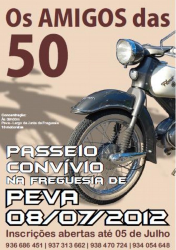 A concentração está marcada para as 9 horas, no largo da Junta de Freguesia local. A organização é de um grupo de amigos da terra, amantes das motoretas de 50 centímetros cúbicos.