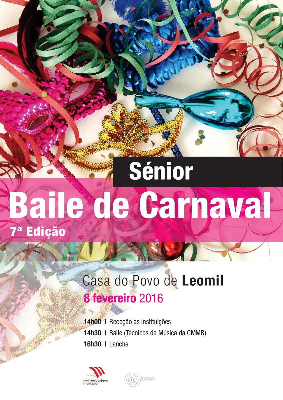 A Casa do Povo de Leomil vai voltar a ser palco, pela 6ª vez consecutiva, do ‘Baile de Carnaval Sénior’, que a Câmara Municipal de Moimenta da Beira organiza desde 2010 e que costuma juntar cerca de duas centenas de utentes das IPSS do concelho. O evento realiza-se no dia 8 de fevereiro a partir das 14 horas, e é feito no âmbito das atividades com a terceira idade promovidas ao longo de todo o ano.