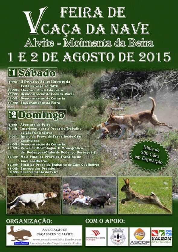 A V Feira de Caça da Nave, em Alvite, Moimenta da Beira, vai realizar-se no fim-de-semana de 1 e2 de Agosto. É organizada pela Associação de Caçadores de Alvite e conta com o apoio da Junta de Freguesia local e da Câmara Municipal.