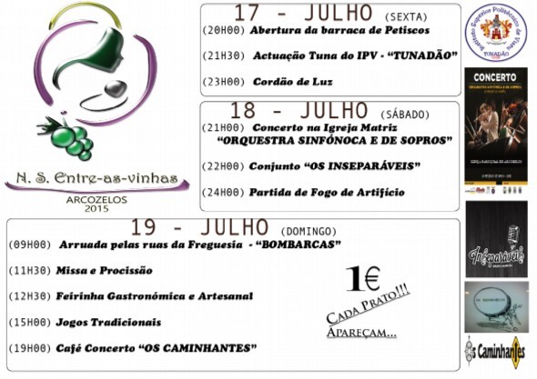 A paróquia de Arcozelos, Moimenta da Beira, celebra este fim-de-semana de 17, 18 e 19 de julho, sexta, sábado e domingo, respectivamente, as Festas de Nossa Senhora de Entre-as-Vinhas, promovidas pela Comissão Fabriqueira.