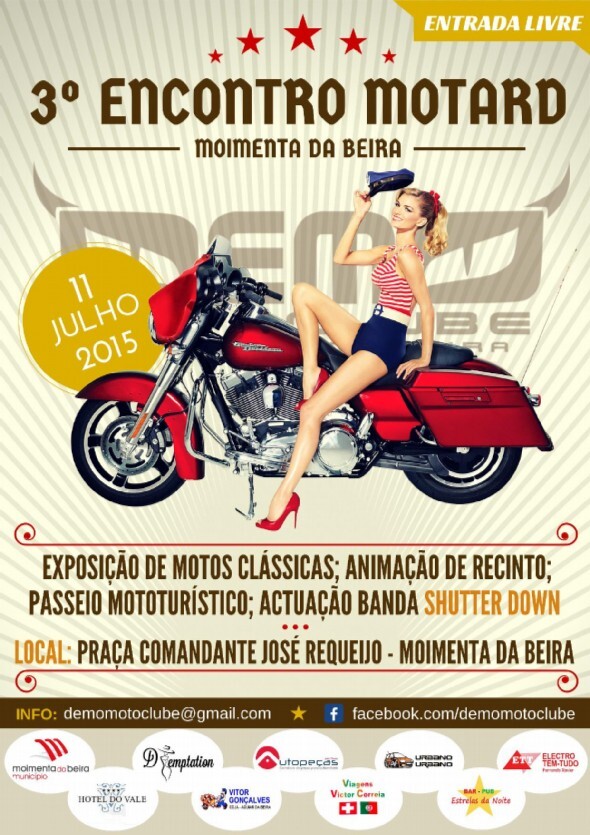 Mais de 500 motas podem juntar-se no 3º Encontro Motard que se realiza dia 11 de julho, a partir das 14 horas, na Praceta Comandante Requeijo, em Moimenta da Beira. O número é avançado e admitido pela associação “Demo Moto Clube”, que organiza o evento.