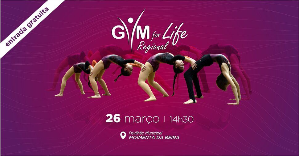 O encontro regional de ginástica “Gym for Life Regional 2022” vai decorrer pela primeira vez em Moimenta da Beira. Será na tarde do dia 26 de março, no Pavilhão Municipal. A organização estará a cargo da Associação de Ginástica do Douro e Dão (AGD2), da Movimenta Associação e do Município de Moimenta da Beira.