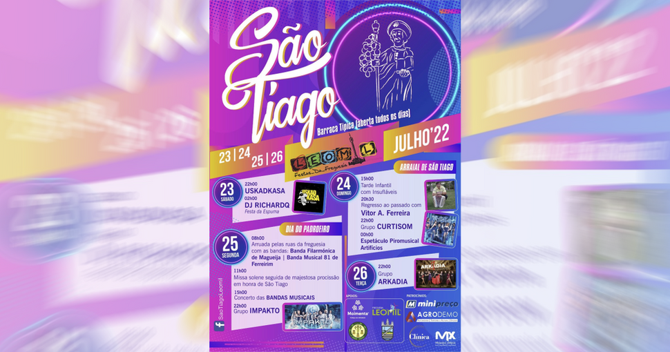 De 23 a 26 de julho, a vila de Leomil, Moimenta da Beira, vai receber as Festas em Honra de S. Tiago, orago desta freguesia. São quatro dias de festejos, mas o dia mais intenso acontece a 25, dia do padroeiro S. Tiago, em que as festividades começam logo de manhã com uma arruada pelas ruas com a Banda Filarmónica de Magueija e a Banda Musical 81 de Ferreirim e prosseguem às 11 horas com missa solene seguida de procissão em honra de S. Tiago. Às 15 horas haverá um concerto das Bandas Musicais. Já à noite, às 22h00, subirá ao palco o Grupo Impakto.