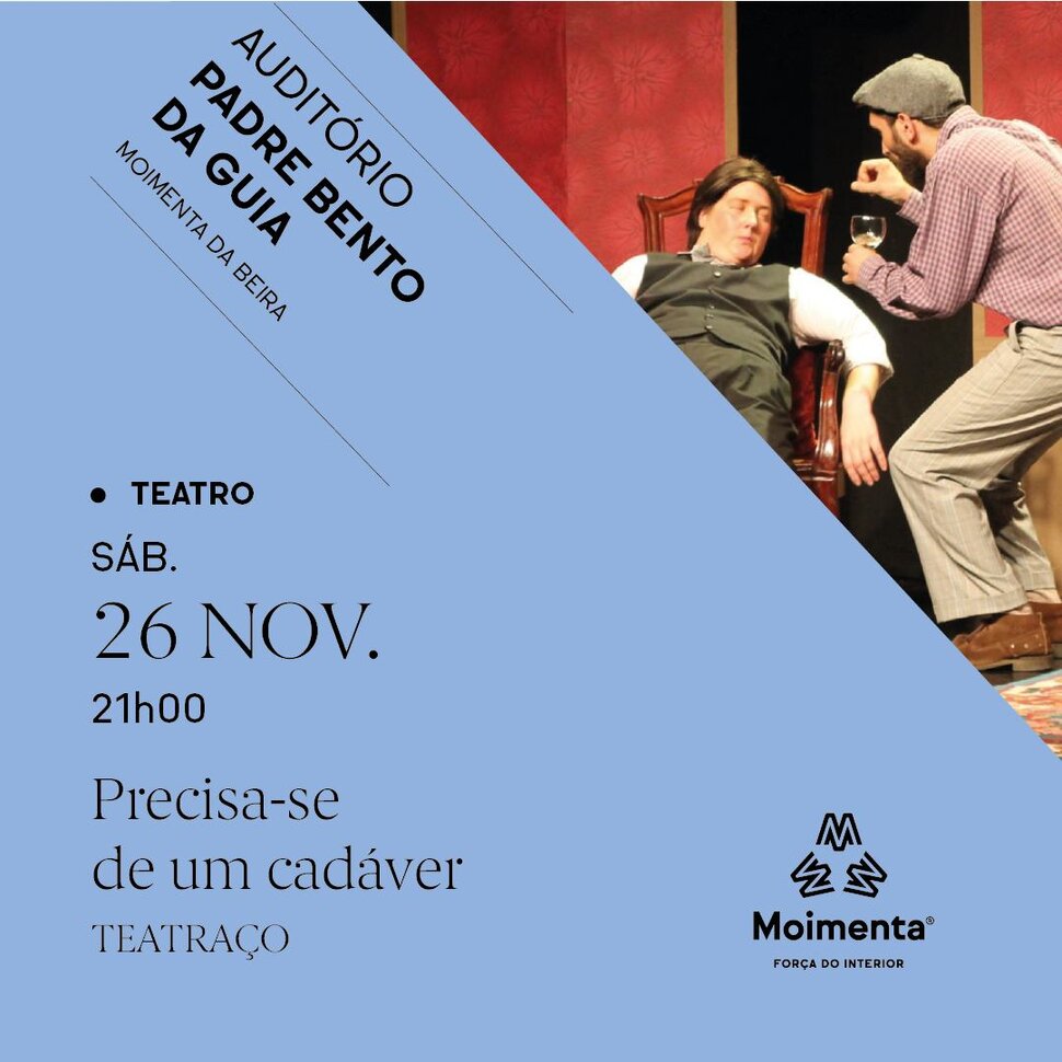 Tem início já no dia 26 de novembro, a Programação Cultural (nov 22 a mai 23) com "Precisa-se de um cadáver", uma peça de teatro de comédia, comédia hilariante em três atos, de 90 minutos, pelo “Teatraço”, grupo de teatro amador de Tabuaço”, com direção e encenação de Beto Coville. Trata-se de uma peça que ganhou os prémios de “Melhor Espetáculo” (Teatraço); “Melhor Encenação” (Beto Coville) e “Melhor Atriz” (Nucha Martins) no Festival Nacional de Teatro que decorreu em 2015 em Proença-a-Nova, tendo ainda conseguido a nomeação para “Melhor Ator” (Bruno Silva).