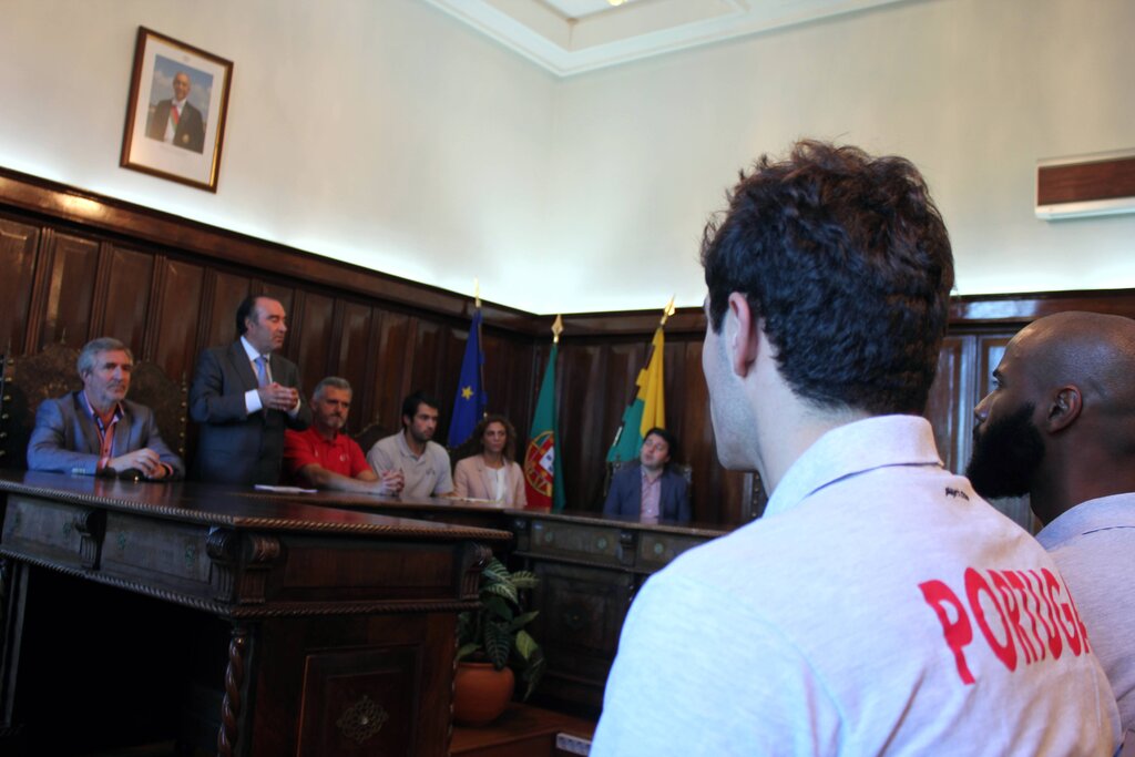 Dois dias depois da sessão de boas vindas à seleção da Roménia, chegou a vez da formação lusa ser recebida no salão nobre da Câmara Municipal de Moimenta da Beira para cerimonial idêntico. Aconteceu esta quarta-feira, 25 de outubro, poucas horas depois de ter vencido a congénere romena (por 29-24) no primeiro de dois jogos do “II Torneiro Internacional de Andebol Terras do Demo” que se disputou no pavilhão municipal da vila.