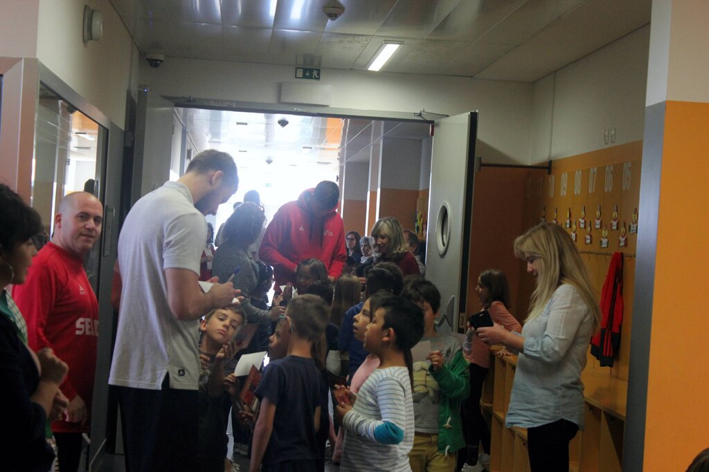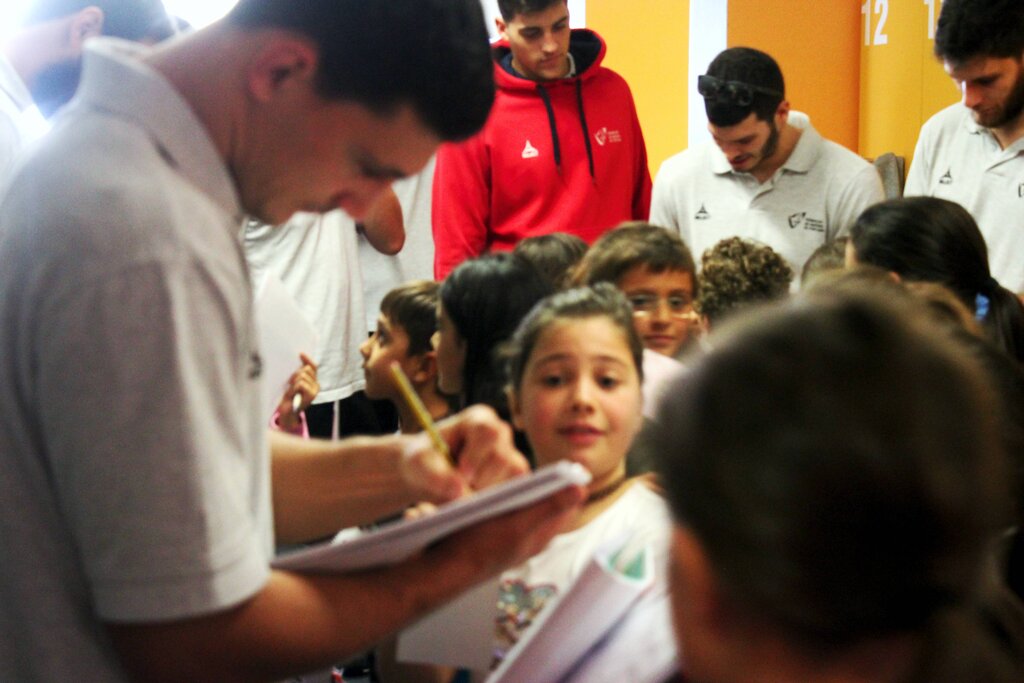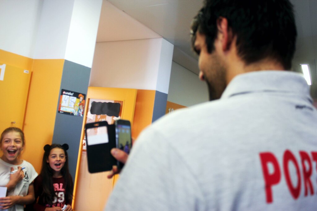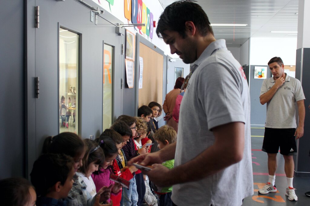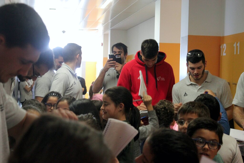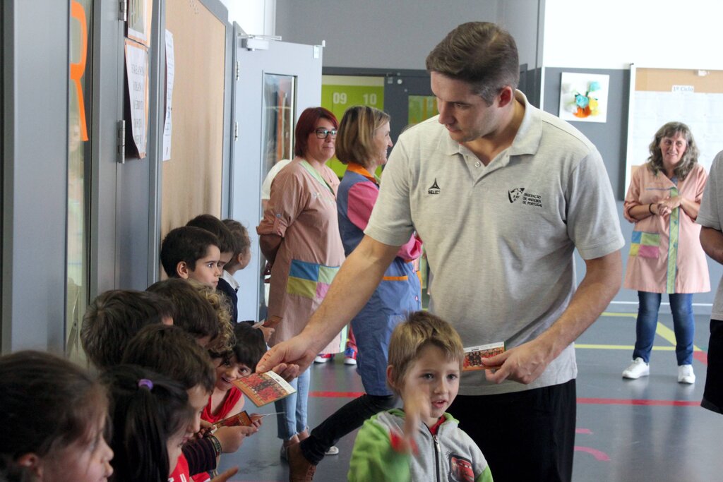 Deram autógrafos, deixaram-se fotografar e distribuíram afetos. Aconteceu esta quinta-feira de manhã, 26 de outubro, no Centro Escolar de Moimenta da Beira, vila onde os jogadores da seleção portuguesa de Andebol estão a estagiar desde domingo passado, 22 de outubro, estágio que inclui dois jogos frente à congénere romena (também em estágio em Moimenta da Beira), um deles disputado ontem, terça-feira, que a seleção das quinas venceu por 29-24, confrontos no âmbito do “II Torneio Internacional de Andebol Terras do Demo”.