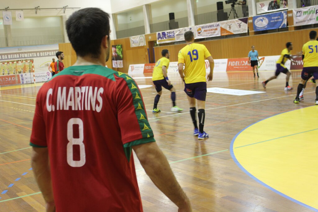 Portugal alinhou com Fábio Antunes, Gilberto Duarte, Wilson Davyes, Tiago Rocha - em troca defesa/ataque com Alexis Borges - Fábio Magalhães, Carlos Martins e, ainda, Alfredo Quintana na baliza. Num início de jogo em que se evidenciaram as defesas de ambas as partidas, Gilberto Duarte inaugurou o marcador, já com quase três minutos jogados. Com dois golos seguidos, a Roménia passou para a frente do marcador pela primeira vez aos seis minutos (2-3), vantagem de imediato anulada pelos lusos. Intensidade e equilíbrio retratavam o jogo, que prosseguiu com sucessivas trocas no comando do marcador (5-4; 5-6; 7-6). A meio da primeira parte, os comandados de Paulo Pereira conseguiram a maior diferença até então (8-6) e o treinador da Roménia, Xavier Pascual, pediu o primeiro time-out do encontro. Apesar do guarda-redes Darius Makaria insistir em negar o golo a Portugal, a turma das quinas aumentou a vantagem para 10-7, com um golo de 7m de Pedro Portela. Alfredo Quintana também estava à altura do adversário e, com excelentes intervenções, evitava a recuperação da equipa adversária. Ainda no decorrer da primeira parte, Paulo Pereira fez várias alterações ao sete inicial e fez entrar Jorge Silva, Rui Silva, Daymaro Salina, Diogo Branquinho e Hugo Figueira, para a baliza. Nos minutos finais da primeira parte, Portugal ainda chegou a ter seis golos de vantagem (14-8), mas a Roménia reduziu e foi para intervalo a perder 14-10.