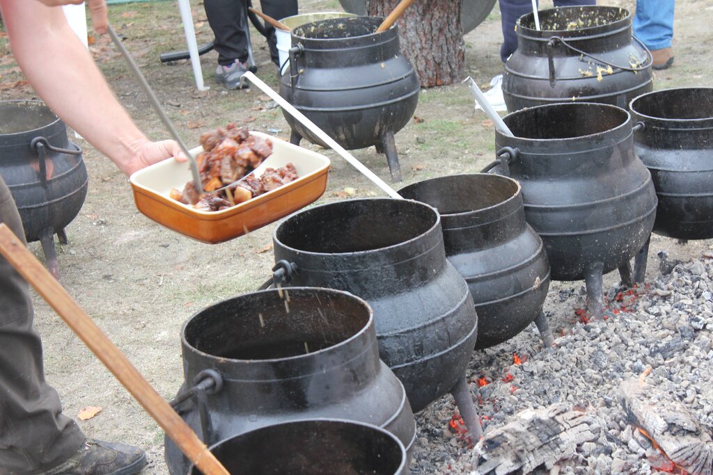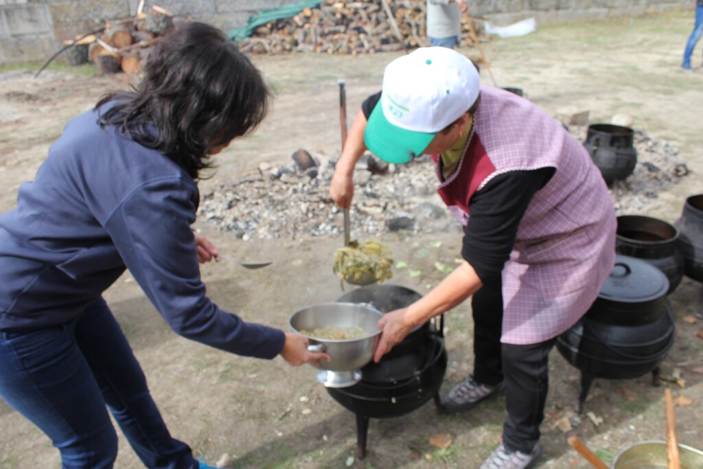 O dia 1 do “Serranias” está cumprido. E os prometidos sabores levados à mesa fizeram mesmo jus à tradição. Ao almoço houve Açorda de Bacalhau, Sarrabulho, Torresmos, Batatas Cozidas, Papas de Ralão e Maçã de Moimenta da Beira. E ao jantar Ossos da Suã e Entrecosto, Batatas Cozidas, Papas de Ralão e mais Maçã de Moimenta da Beira. Tudo feito em potes de ferro sobre as brasas da fogueira que arderam o dia inteiro nas traseiras da antiga escola primária, no largo de mestre Aquilino Ribeiro, em Soutosa, Moimenta da Beira.