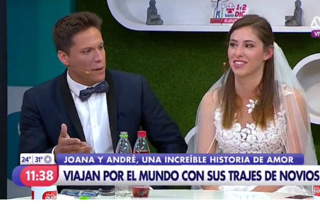 Estavam em Santiago, capital do Chile, e foram entrevistados em direto para o programa “Mucho Gusto” nos estúdios do canal de televisão chileno MEGA, quinta-feira passada, 10 de novembro. Foram quase 11 minutos de diálogo bem-disposto entre os apresentadores (e outros convidados) e o casal moimentense André Santos e Joana Salgueiro, que, desde o casamento, em Moimenta da Beira, percorrem o mundo vestidos de noivos “para perpetuarem o amor”.